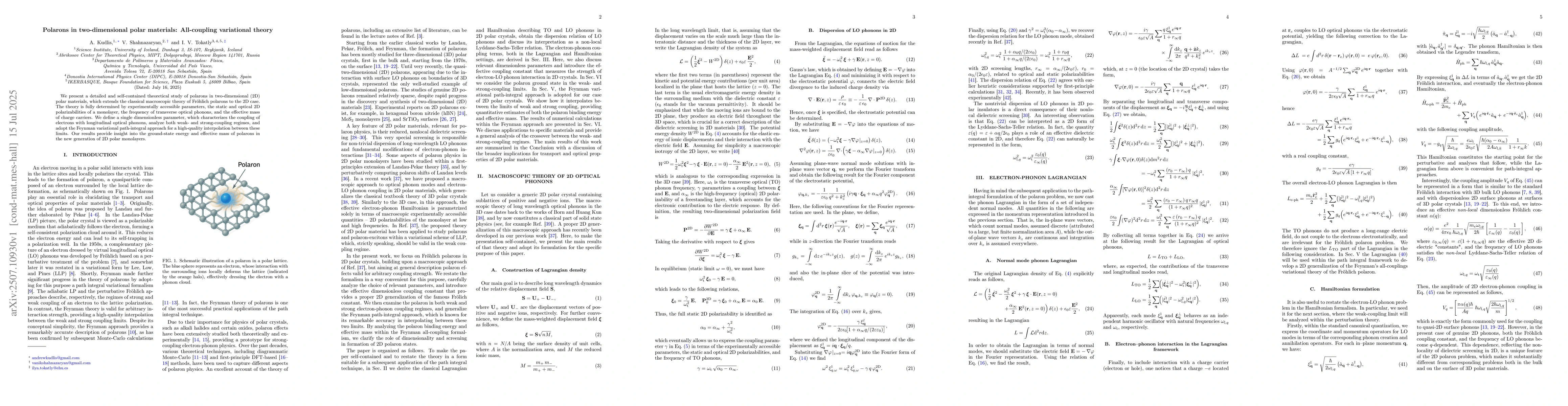 The paper presents an all-coupling variational theory for polarons in 2D polar materials, characterized by an effective coupling constant αm, which generalizes the standard Fröhlich constant to 2D systems.