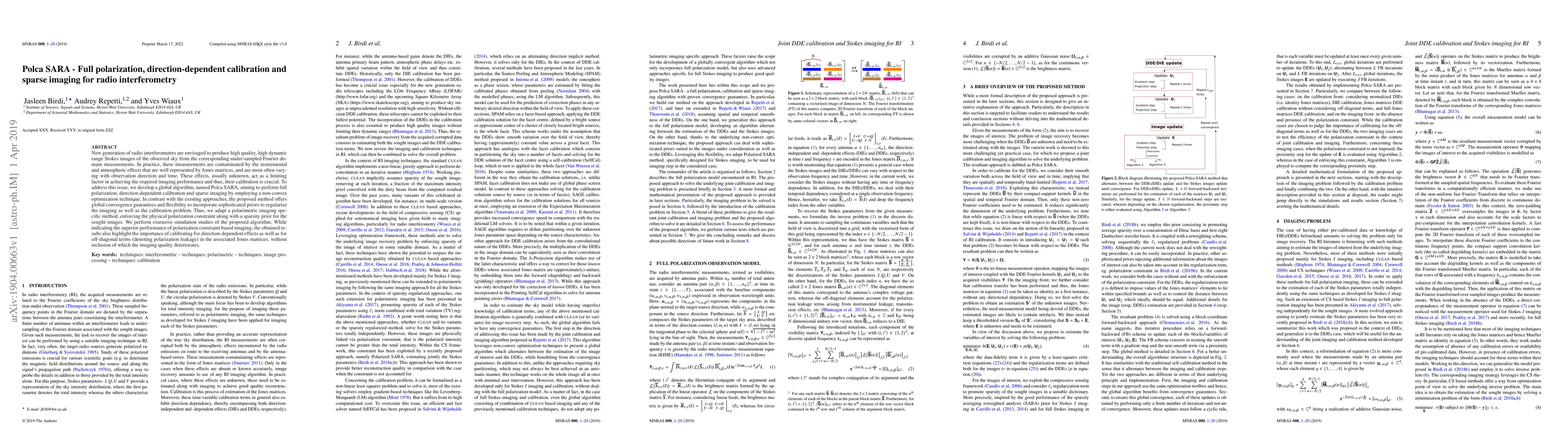 The paper introduces Polca SARA, a novel algorithm for full polarization, direction-dependent calibration, and sparse imaging in radio interferometry, addressing instrumental and atmospheric effects through non-convex optimization. The method ensures global convergence and flexibility to incorporate sophisticated priors, significantly improving imaging quality by calibrating for direction-dependent effects and polarization leakage.