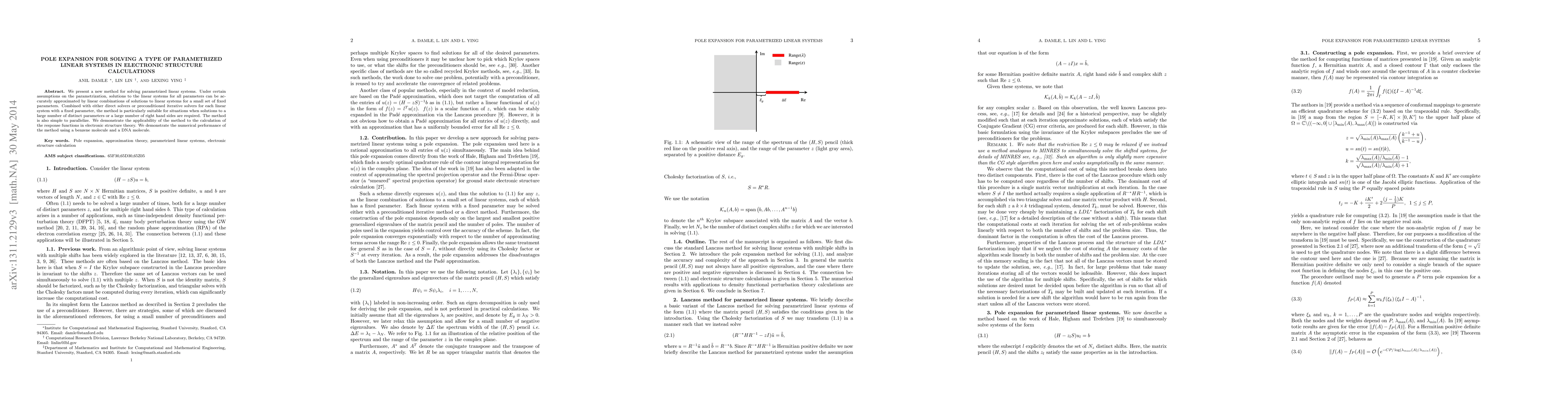 We present a new method for solving parametrized linear systems. Under certain assumptions on the parametrization, solutions to the linear systems for all parameters can be accurately approximated by linear combinations of solutions to linear systems for a small set of fixed parameters. Combined with either direct solvers or preconditioned iterative solvers for each linear system with a fixed parameter, the method is particularly suitable for situations when solutions to a large number of distinct parameters or a large number of right hand sides are required. The method is also simple to parallelize. We demonstrate the applicability of the method to the calculation of the response functions in electronic structure theory. We demonstrate the numerical performance of the method using a benzene molecule and a DNA molecule.