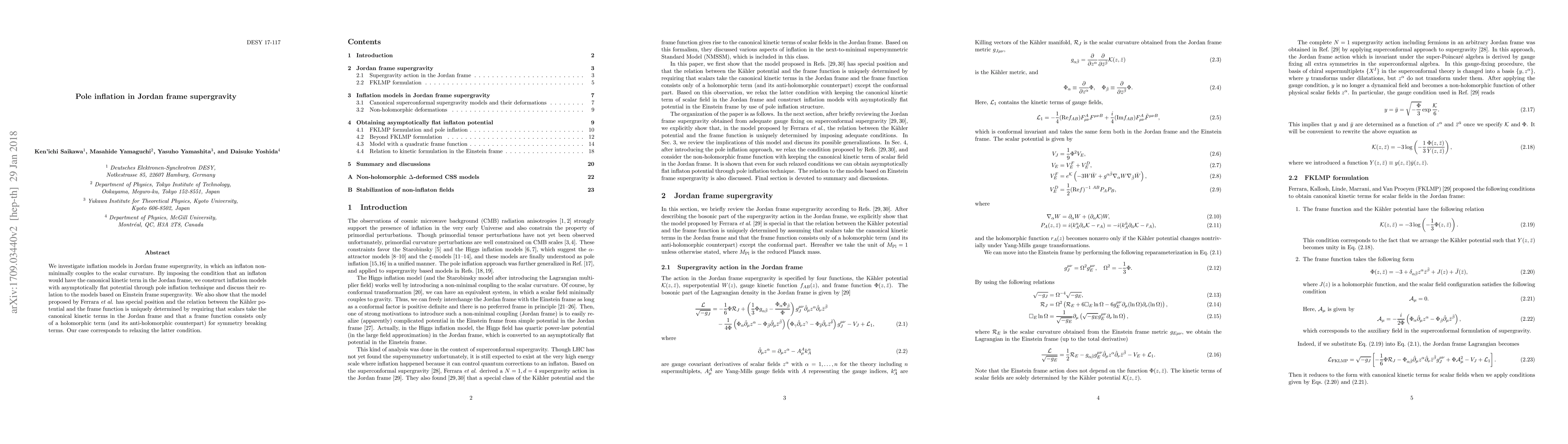 This paper explores inflation models in Jordan frame supergravity where the inflaton non-minimally couples to the scalar curvature, constructing models with asymptotically flat potentials using the pole inflation technique. It highlights the special position of a Ferrara et al. model and determines the unique relation between the Kähler potential and the frame function under specific symmetry breaking conditions.