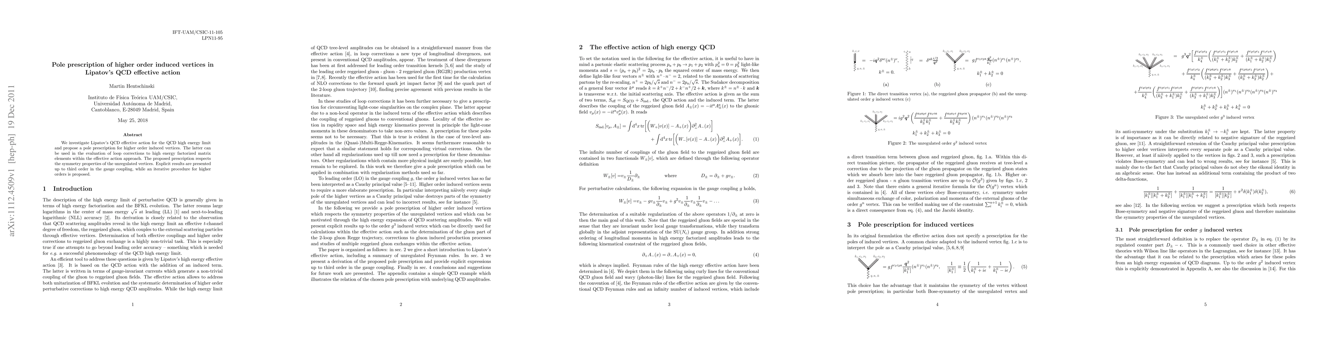 This paper proposes a pole prescription for higher order induced vertices in Lipatov's QCD effective action, which facilitates the evaluation of loop corrections to high energy factorized matrix elements. The method respects the symmetry properties of unregulated vertices and provides explicit results up to third order in the gauge coupling, with an iterative approach suggested for higher orders.