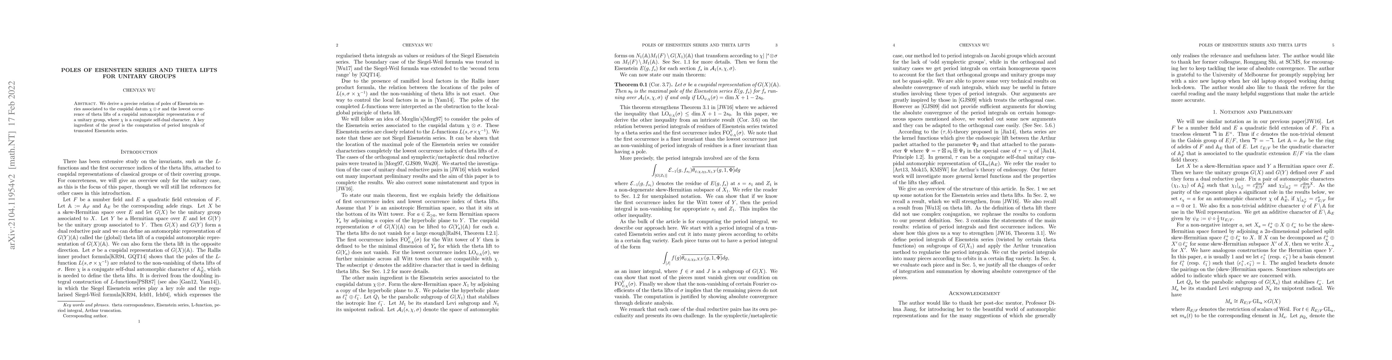 This paper establishes a detailed connection between the poles of Eisenstein series linked to cuspidal data and the first occurrence of theta lifts for unitary groups, utilizing period integrals of truncated Eisenstein series as a crucial component in the proof.