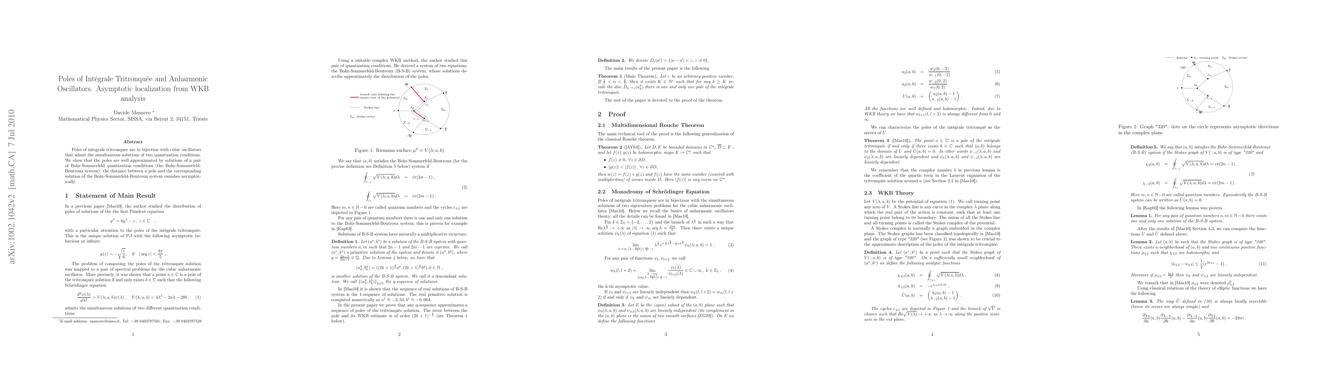 Poles of integrale tritronquee are in bijection with cubic oscillators that admit the simultaneous solutions of two quantization conditions. We show that the poles lie near the solutions of a pair of Bohr-Sommerfeld quantization conditions (the Bohr-Sommerfeld-Boutroux system): the distance between a pole and the corresponding solution of the Bohr-Sommerfeld-Boutroux system vanishes asymptotically.