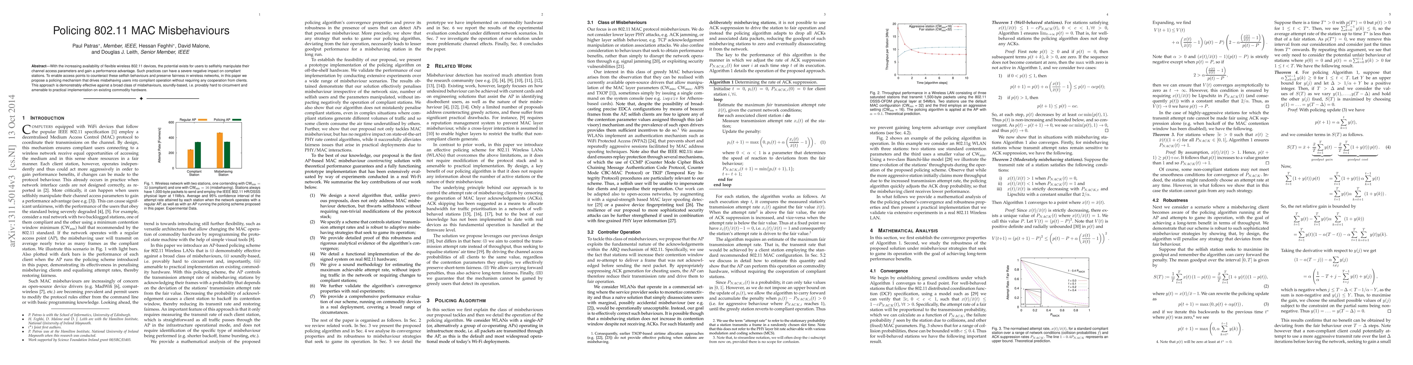 Researchers propose a policing mechanism to counter selfish behavior in wireless networks, ensuring fair access for compliant users without client cooperation. The approach is effective against various misbehaviors and can be implemented on commodity hardware.