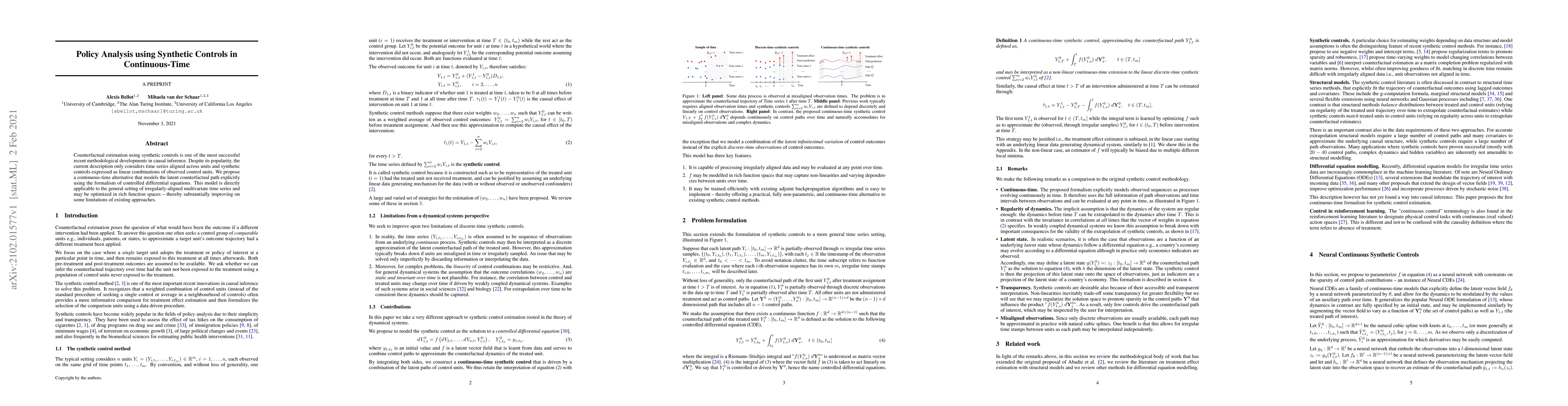 Counterfactual estimation using synthetic controls is one of the most successful recent methodological developments in causal inference. Despite its popularity, the current description only considers time series aligned across units and synthetic controls expressed as linear combinations of observed control units. We propose a continuous-time alternative that models the latent counterfactual path explicitly using the formalism of controlled differential equations. This model is directly applicable to the general setting of irregularly-aligned multivariate time series and may be optimized in rich function spaces -- thereby improving on some limitations of existing approaches.