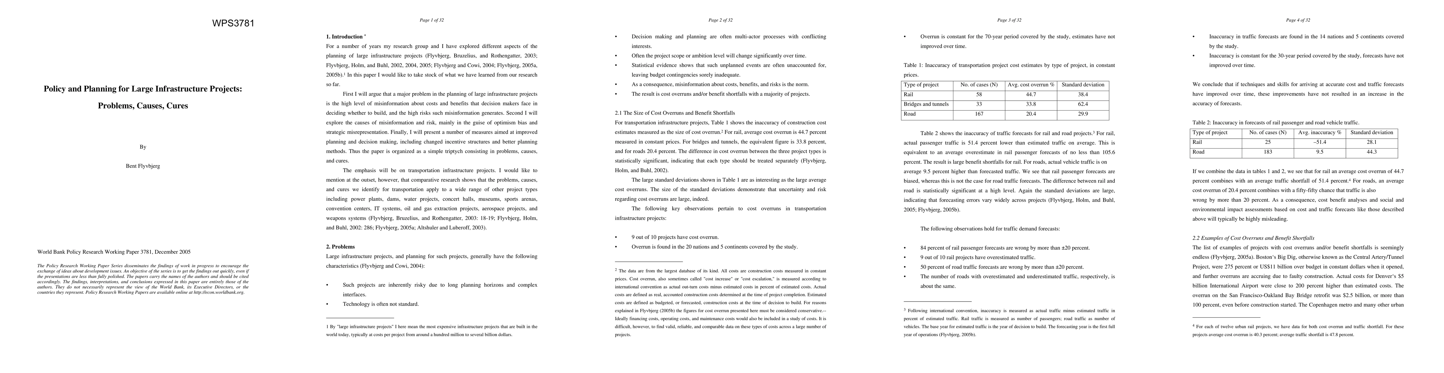 This paper identifies high levels of misinformation about costs and benefits as a major problem in planning large infrastructure projects, attributing it to optimism bias and strategic misrepresentation. It proposes measures such as altered incentive structures and improved planning methods to address these issues.