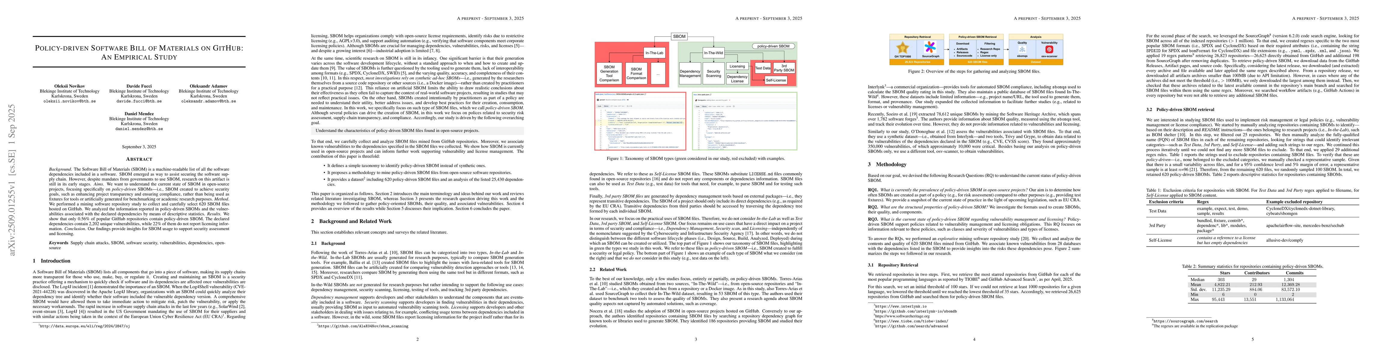 Background. The Software Bill of Materials (SBOM) is a machine-readable list of all the software dependencies included in a software. SBOM emerged as way to assist securing the software supply chain. However, despite mandates from governments to use SBOM, research on this artifact is still in its early stages. Aims. We want to understand the current state of SBOM in open-source projects, focusing specifically on policy-driven SBOMs, i.e., SBOM created to achieve security goals, such as enhancing project transparency and ensuring compliance, rather than being used as fixtures for tools or artificially generated for benchmarking or academic research purposes. Method. We performed a mining software repository study to collect and carefully select SBOM files hosted on GitHub. We analyzed the information reported in policy-driven SBOMs and the vulnerabilities associated with the declared dependencies by means of descriptive statistics. Results. We show that only 0.56% of popular GitHub repositories contain policy-driven SBOM. The declared dependencies contain 2,202 unique vulnerabilities, while 22% of them do not report licensing information. Conclusion. Our findings provide insights for SBOM usage to support security assessment and licensing.