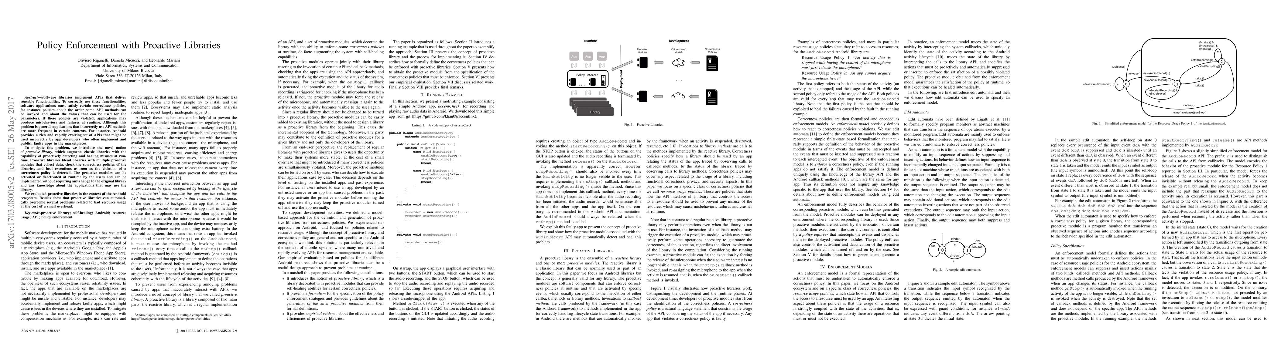 This paper introduces proactive libraries that augment traditional software libraries to detect and correct misuses at runtime, particularly in the Android ecosystem. These libraries include proactive modules that monitor and heal policy violations without requiring changes to the original library or knowledge of the application using it.