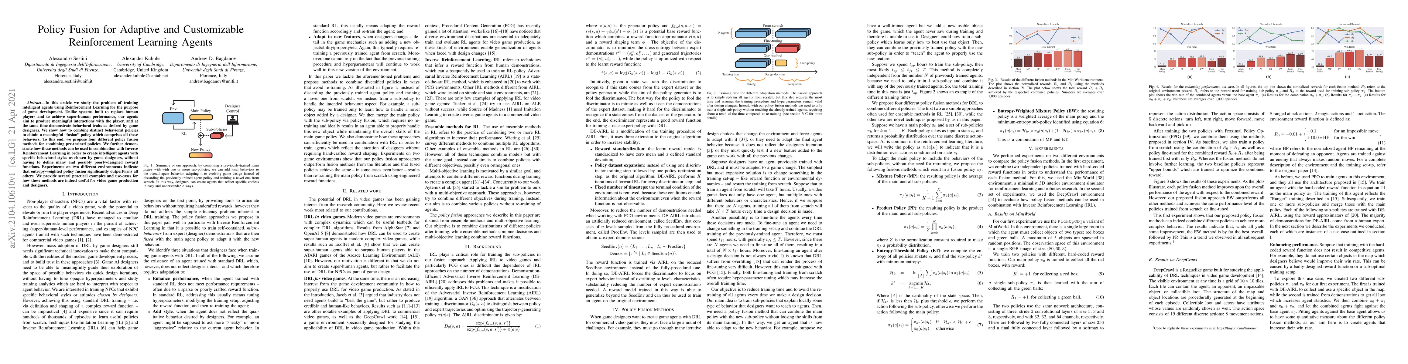 This paper explores adaptive reinforcement learning agents for game development, focusing on creating meaningful player interactions. It proposes four policy fusion methods to combine pre-trained policies, demonstrating that entropy-weighted policy fusion outperforms others, and shows practical applications in video game design.