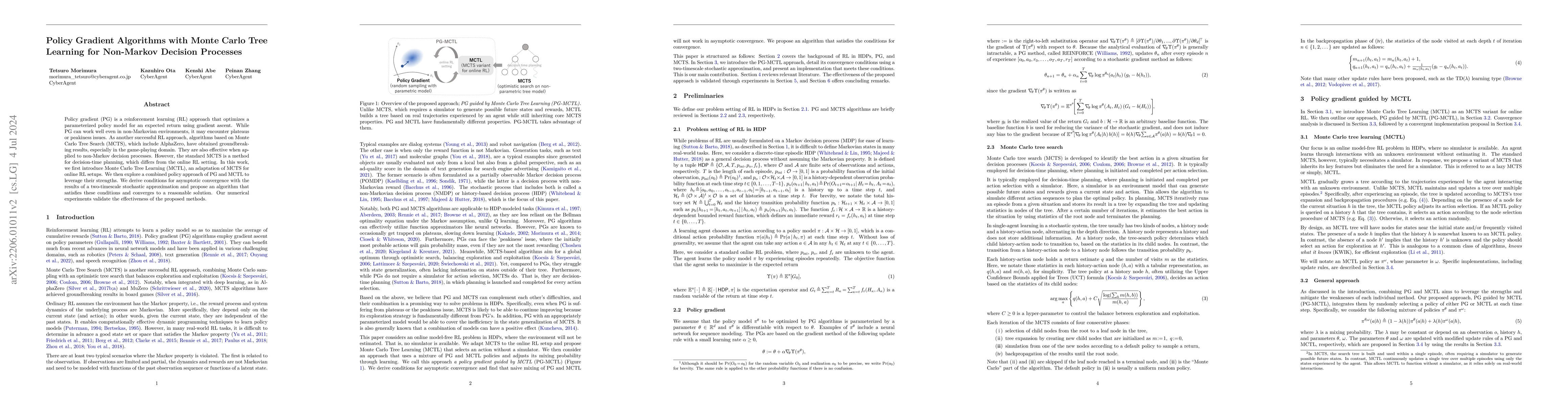 This paper proposes a hybrid reinforcement learning approach combining policy gradient algorithms with Monte-Carlo Tree Search to tackle non-Markov decision processes. The proposed method leverages the strengths of both techniques to overcome their individual limitations and achieve asymptotic convergence.