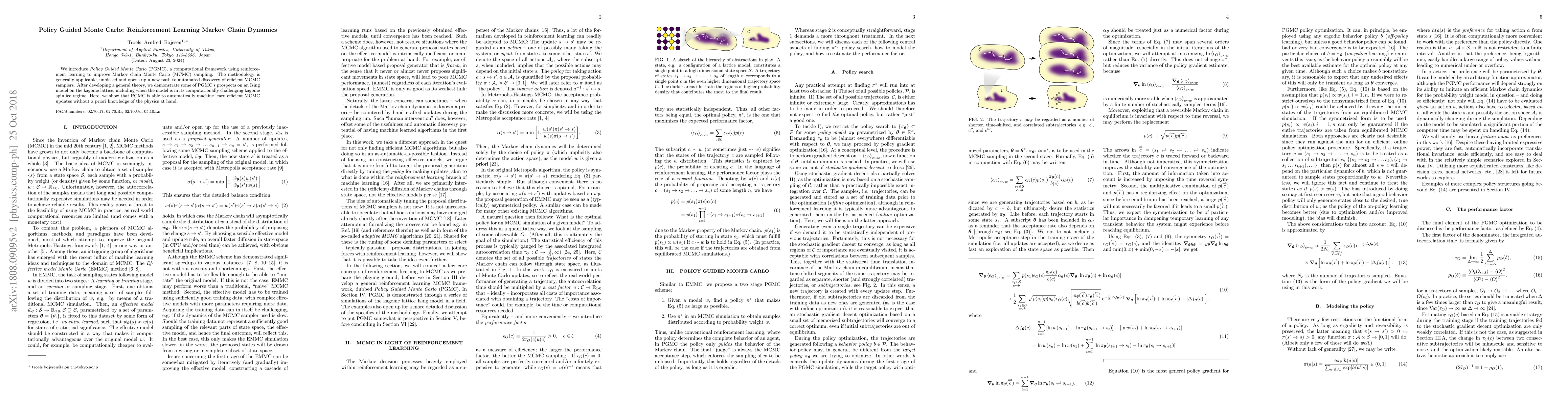 This paper introduces Policy Guided Monte Carlo (PGMC), a reinforcement learning framework that enhances Markov chain Monte Carlo (MCMC) sampling, demonstrating its effectiveness on an Ising model in the challenging kagome spin ice regime. PGMC automates the discovery of efficient MCMC updates without prior physics knowledge.
