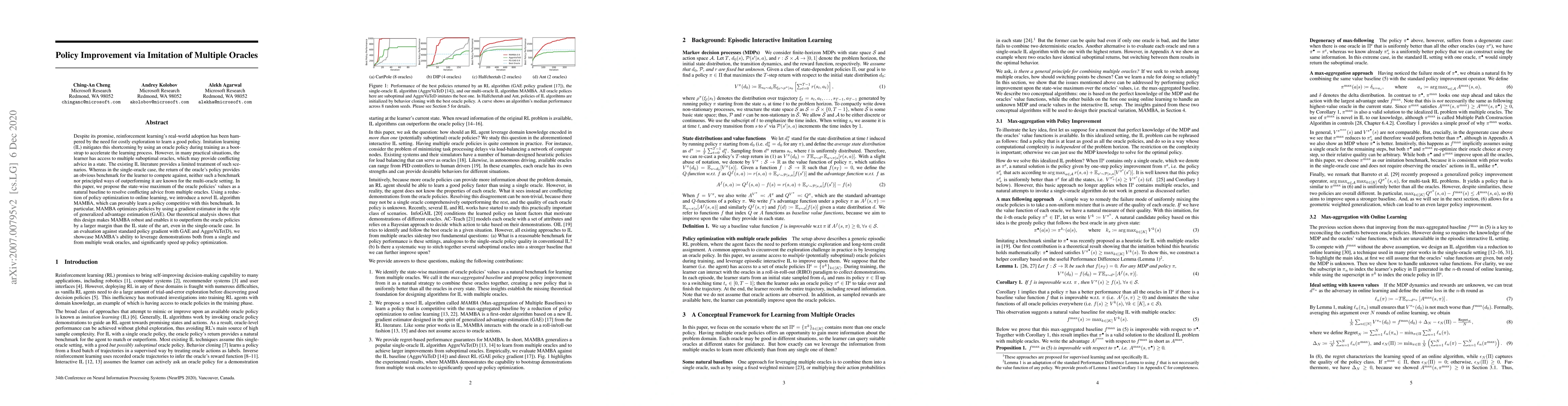 This paper proposes MAMBA, a novel imitation learning algorithm that leverages multiple suboptimal oracles to accelerate policy optimization. It uses the state-wise maximum of the oracle policies' values as a benchmark to resolve conflicting advice, and demonstrates that MAMBA can outperform the oracles, even in single-oracle scenarios, through a robust gradient estimator and theoretical analysis.