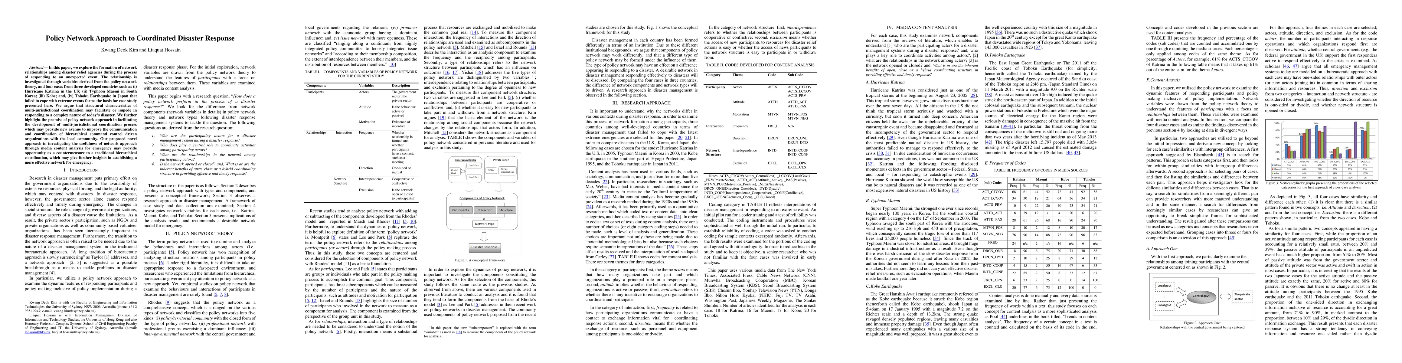 A study using policy network theory investigates disaster response coordination in 3 countries, highlighting the potential of a non-hierarchical approach to improve communication and community engagement. The research proposes a novel method for analyzing emergency responses through media content analysis.
