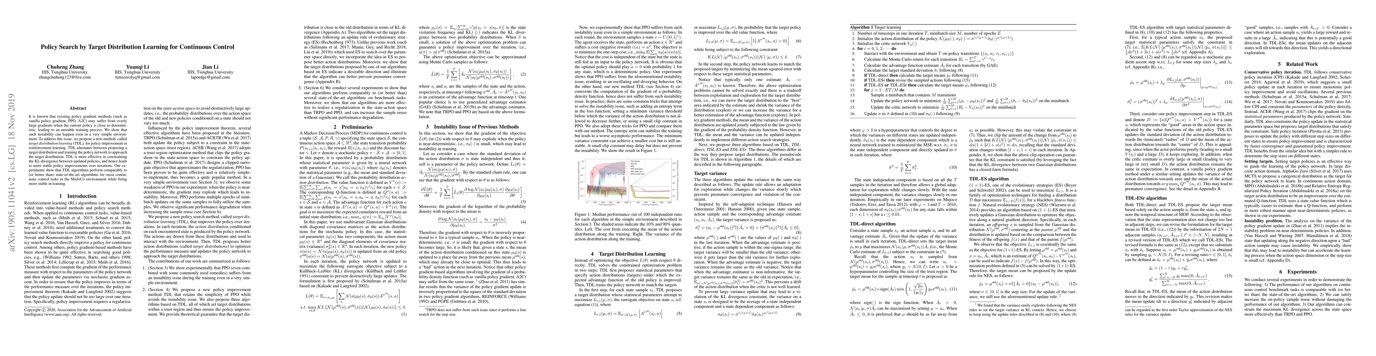 A new policy improvement method called Target Distribution Learning (TDL) is proposed to address unstable training in reinforcement learning, achieving comparable results with state-of-the-art algorithms while improving stability.