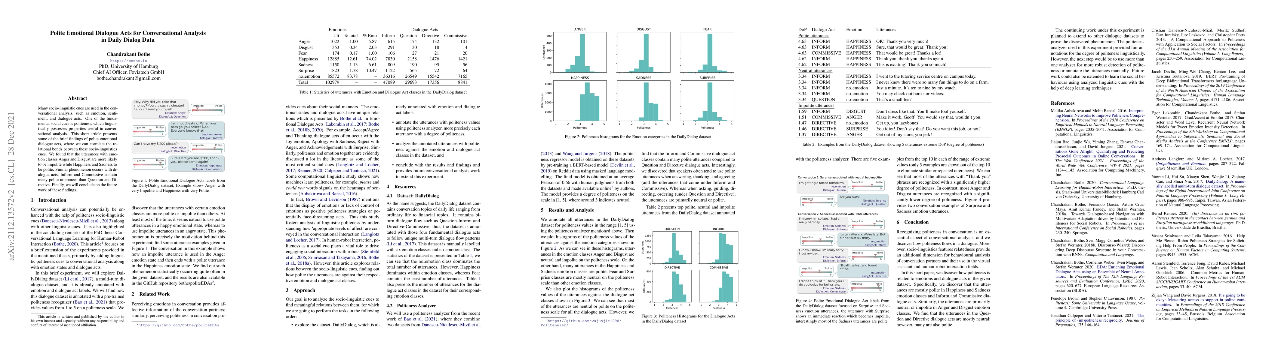 This paper explores the correlation between polite emotional dialogue acts and relational bonds in conversational analysis, finding that emotions like Anger and Disgust are often impolite, while Happiness and Sadness tend to be polite. It also notes that Inform and Commissive dialogue acts are more polite than Question and Directive acts, concluding with future research directions.