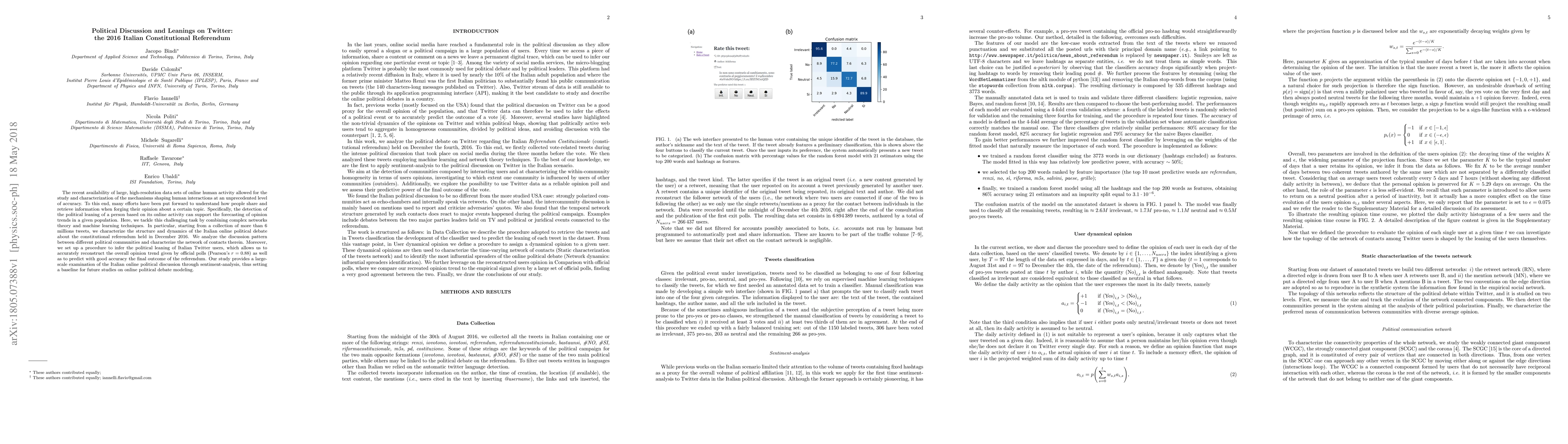This study combines complex networks theory and machine learning to analyze over 6 million tweets about the 2016 Italian Constitutional Referendum, revealing the structure and dynamics of online political discourse. It successfully infers users' political leanings, accurately predicting opinion trends and the referendum's outcome.