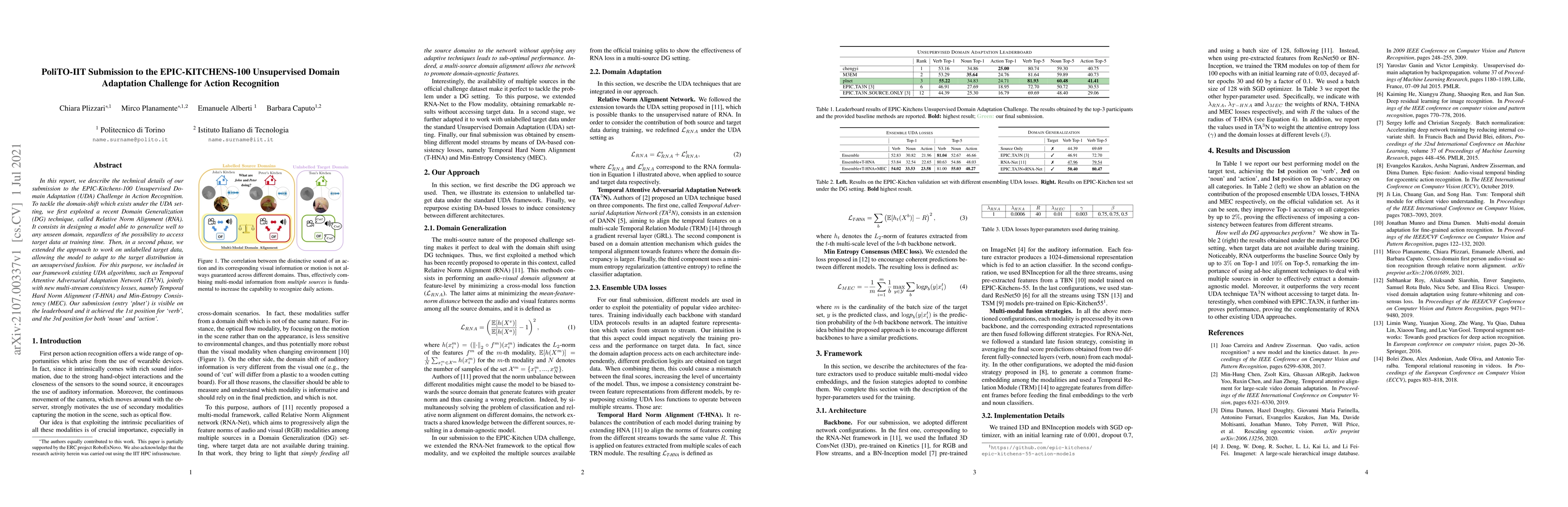 The PoliTO-IIT team submitted a model to the EPIC-Kitchens-100 Unsupervised Domain Adaptation Challenge, employing Relative Norm Alignment for domain generalization and extending it with Temporal Attentive Adversarial Adaptation Network and new consistency losses. The submission achieved 1st place for 'verb' and 3rd place for 'noun' and 'action'.