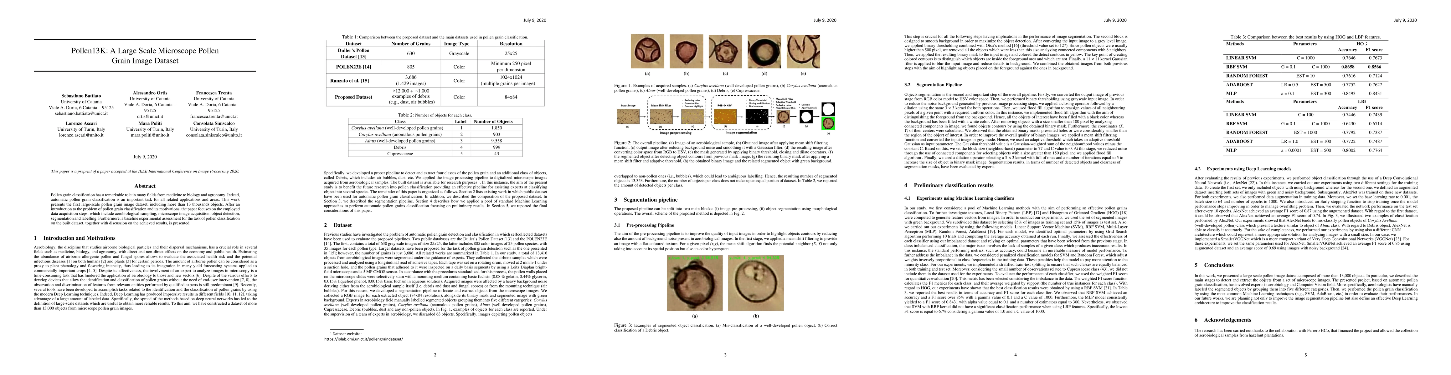 This paper introduces Pollen13K, a large-scale dataset of over 13,000 microscope images of pollen grains, aimed at advancing automatic classification techniques across various fields. The dataset includes detailed steps for data acquisition and presents initial experimental results on pollen classification.