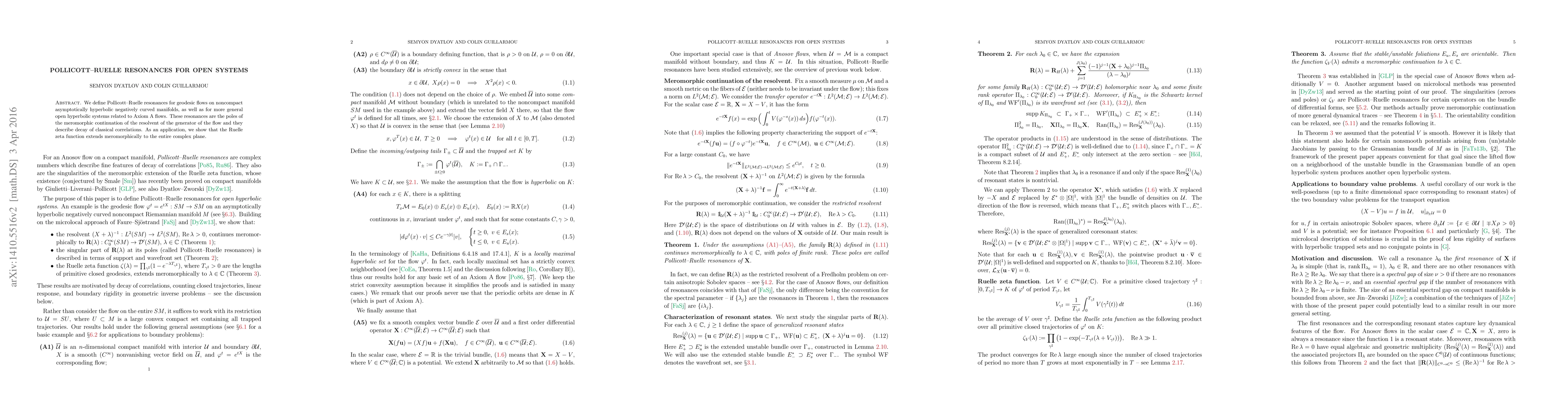 This paper defines Pollicott-Ruelle resonances for open hyperbolic systems and demonstrates their role in describing the decay of classical correlations. It shows that the Ruelle zeta function can be extended meromorphically to the entire complex plane.