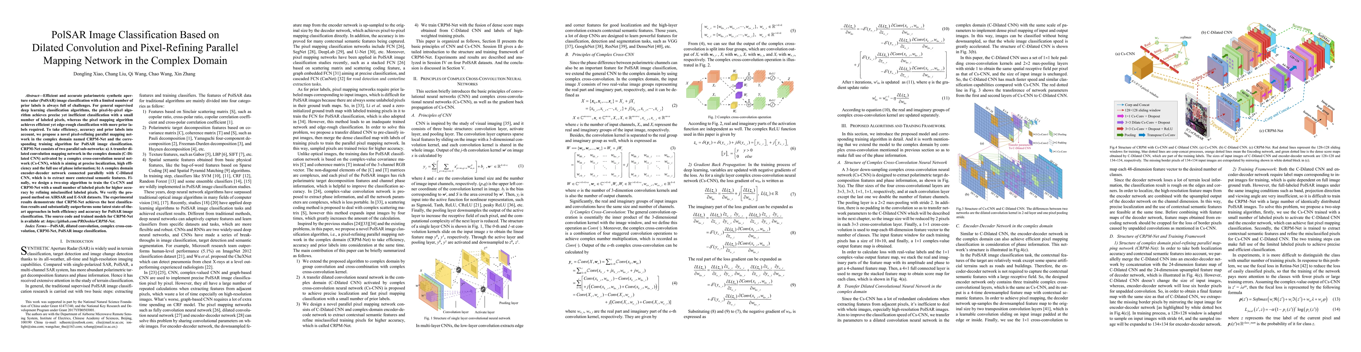 This paper proposes CRPM-Net, a novel pixel-refining parallel mapping network for efficient and accurate PolSAR image classification using limited labeled data. The network combines a complex domain dilated convolution network and an encoder-decoder network for precise localization and contextual feature extraction, achieving superior performance compared to state-of-the-art methods.