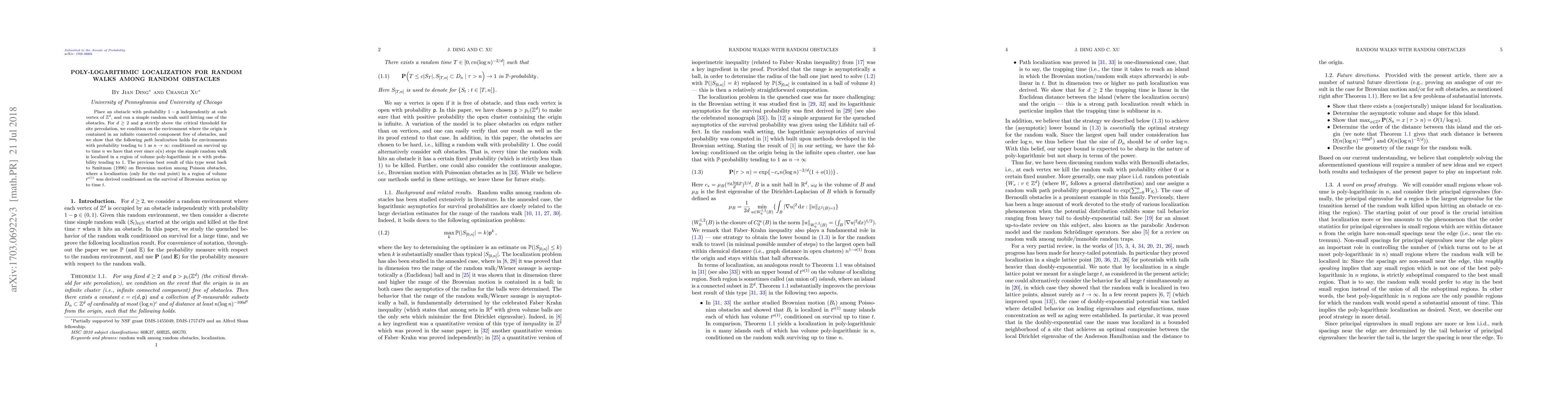 This paper demonstrates that, in two or more dimensions, a simple random walk among random obstacles localizes within a poly-logarithmic volume region after a poly-logarithmic number of steps, provided the walk survives long enough. This improves upon previous results by localizing the path rather than just the endpoint.
