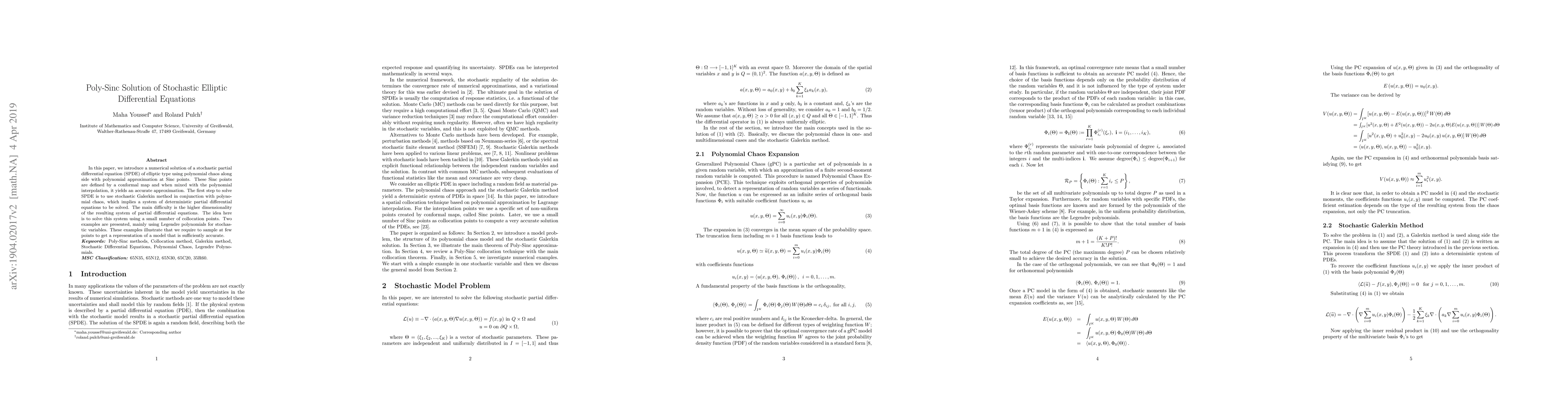 This paper proposes a numerical solution for stochastic elliptic partial differential equations using polynomial chaos and Sinc points, achieving accurate approximations through polynomial interpolation. The stochastic Galerkin method is employed to convert the problem into a system of deterministic equations, which is then solved using a small number of collocation points.