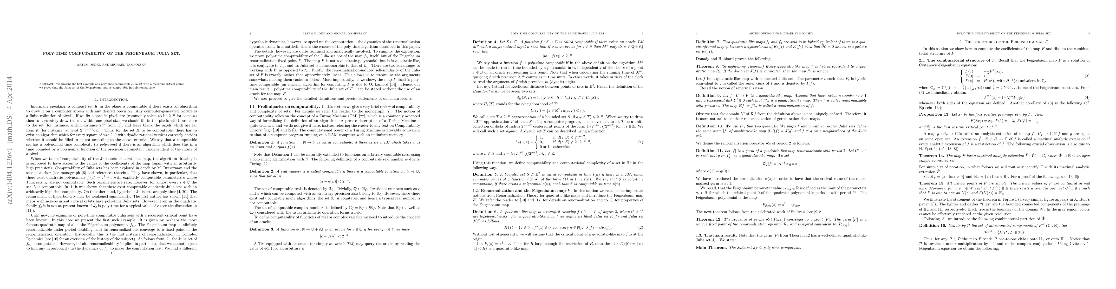 This paper demonstrates the first instance of a polynomial-time computable Julia set featuring a recurrent critical point, proving that the Julia set associated with the Feigenbaum map can be computed in polynomial time.