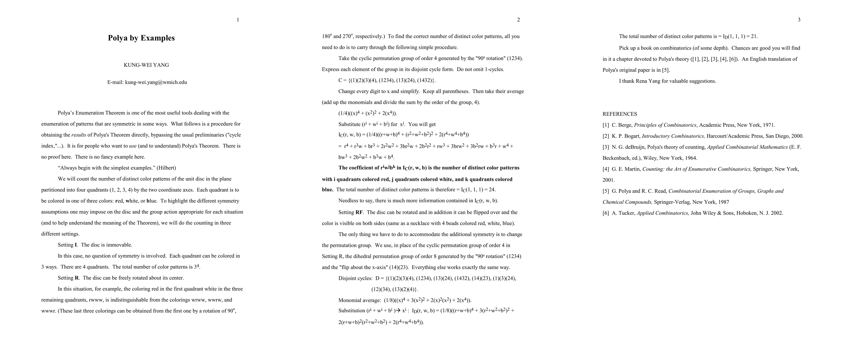 Polya Enumeration Theorem is one of the most useful tools dealing with the enumeration of patterns that are symmetric in some ways. What follows is a procedure for obtaining the results of Polya Theorem directly, bypassing the usual preliminaries.