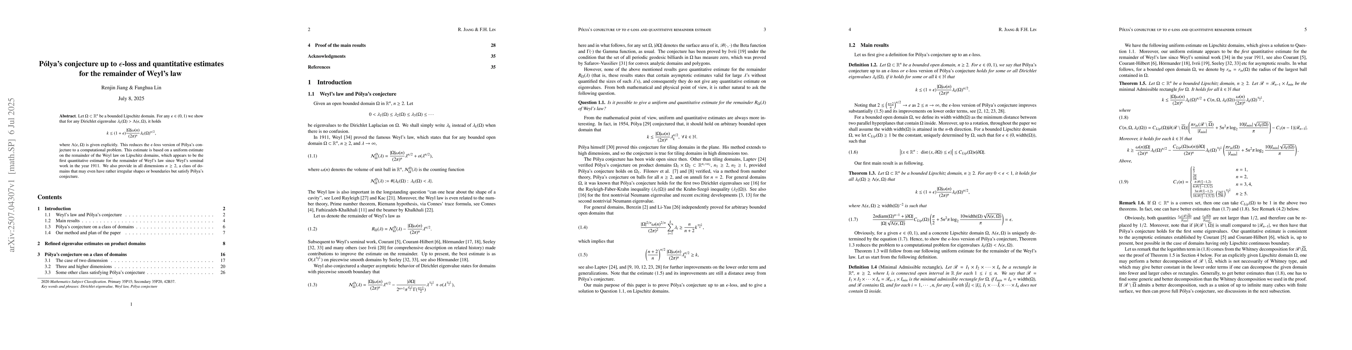 Let $\Omega\subset\mathbb{R}^n$ be a bounded Lipschitz domain. For any $\epsilon\in (0,1)$ we show that for any Dirichlet eigenvalue $\lambda_k(\Omega)>\Lambda(\epsilon,\Omega)$, it holds \begin{align*} k&\le (1+\epsilon)\frac{|\Omega|\omega(n)}{(2\pi)^n}\lambda_k(\Omega)^{n/2}, \end{align*} where $\Lambda(\epsilon,\Omega)$ is given explicitly. This reduces the $\epsilon$-loss version of P\'olya's conjecture to a computational problem. This estimate is based on a uniform estimate on the remainder of the Weyl law on Lipschitz domains, which appears to be the first quantitative estimate for the remainder of Weyl's law since Weyl's seminal work in the year 1911. We also provide in all dimensions $n\ge 2$, a class of domains that may even have rather irregular shapes or boundaries but satisfy P\'olya's conjecture.