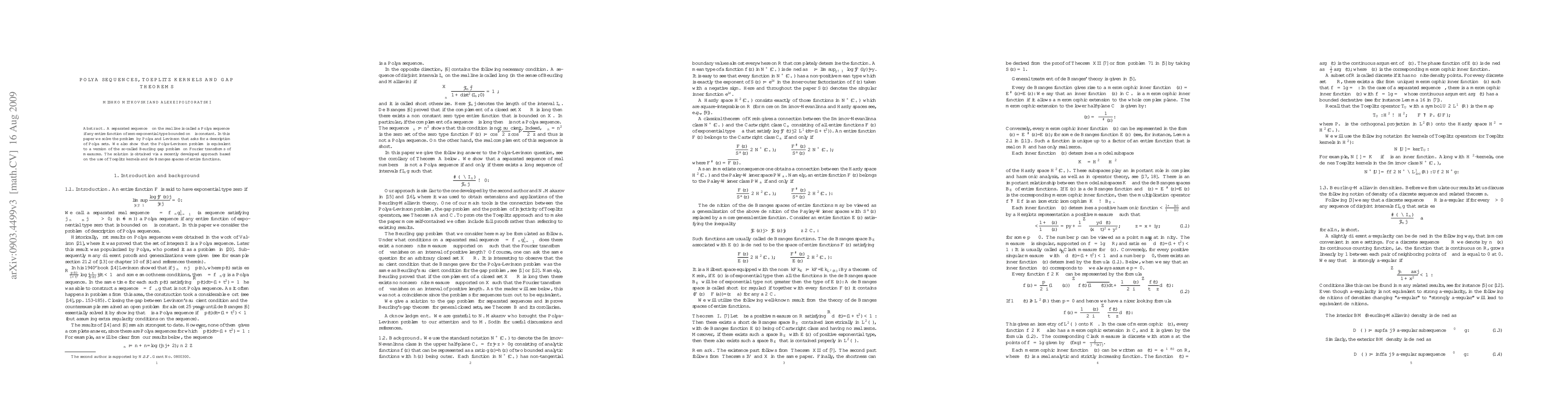 Researchers solved the Polya-Levinson problem by connecting it to the Beurling gap problem on Fourier transforms of measures using Toeplitz kernels and de Branges spaces, providing a new approach to describing Polya sets.