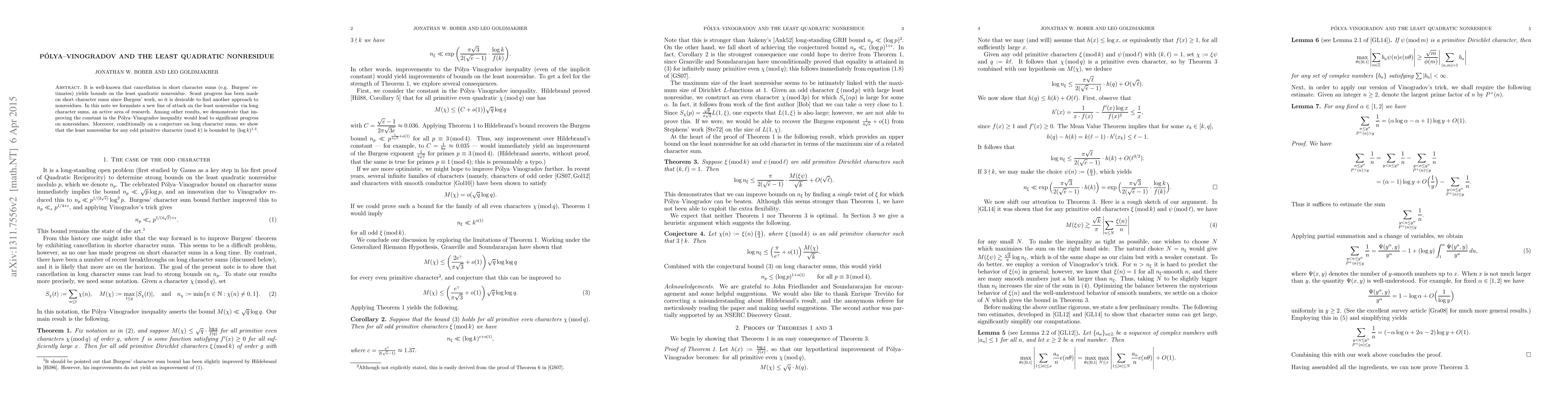 The paper introduces a new method using long character sums to study the least quadratic nonresidue, providing an upper bound on the least nonresidue for an odd character in terms of the maximum size of a related character sum.