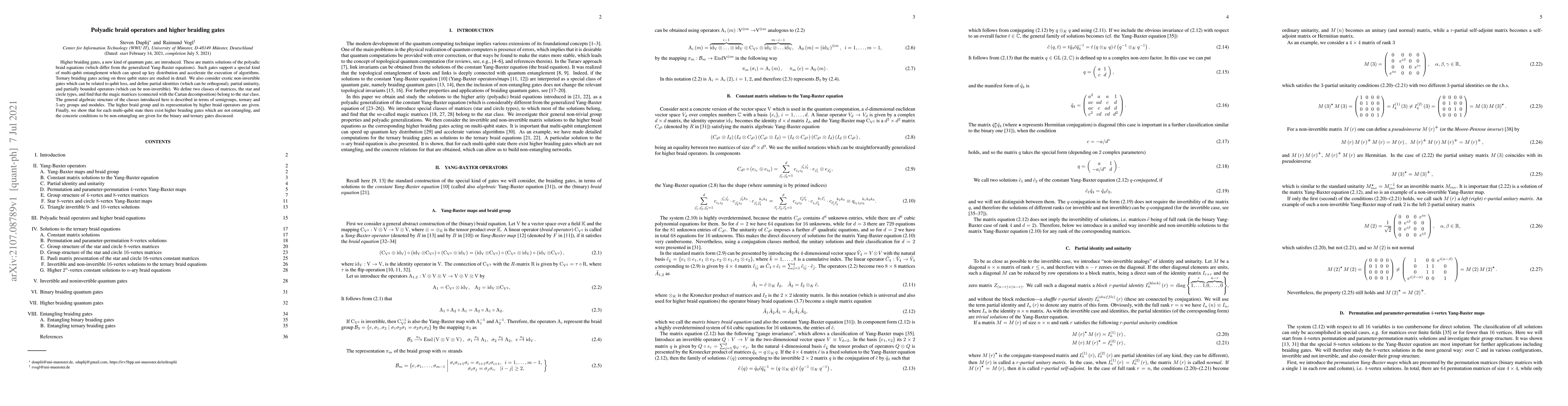 This paper introduces higher braiding gates as matrix solutions of polyadic braid equations, supporting special multi-qubit entanglement to speed up key distribution and algorithms. It explores ternary gates in detail and discusses non-invertible gates related to qubit loss, defining partial identities and unitarity. The study categorizes matrices into star and circle types, with magic matrices belonging to the star class, and elaborates on their algebraic structures through semigroups and groups.