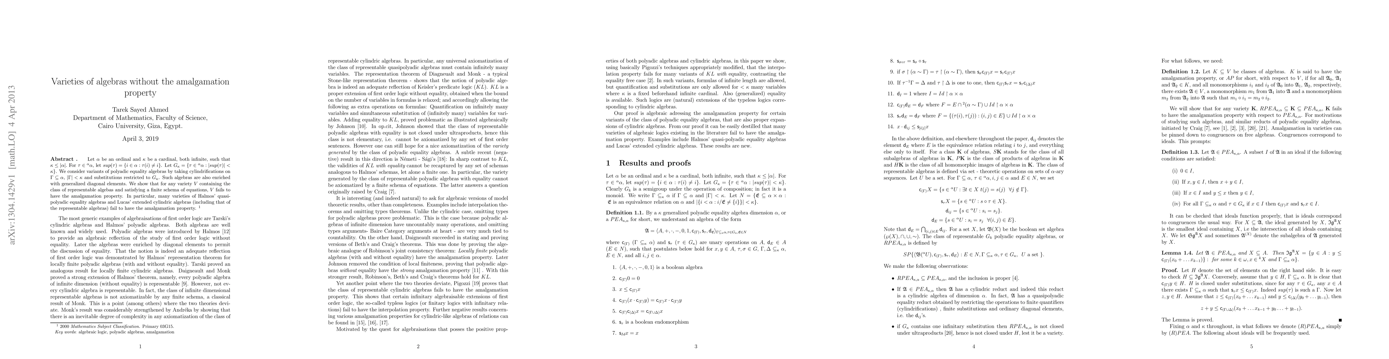 Usually when we have polyadic-like algebras, meaning that we have infinitary substitutions (that is substitutions moving infinitely many points) in the similarity type, then we get the superamalgamation property especially if this class of algebras happen to be a variety. This for example happens for (full) polyadic algebras, full Heyting algebras and reducts of those using only finitely many infinitary substitutions, like Sains Boolean and Heyting algebras. (The last is studied by Sayed Ahmed) . In cylindric-like algebras (like quasi-polyadic algebras) when we do not have infinitary substitutions, we do not get even the amalgamation property . In this paper, we give an example of a polyadic like variety (we have infinitary substitutions, in fact infinitely many of them) for which the amalgamation property fails.