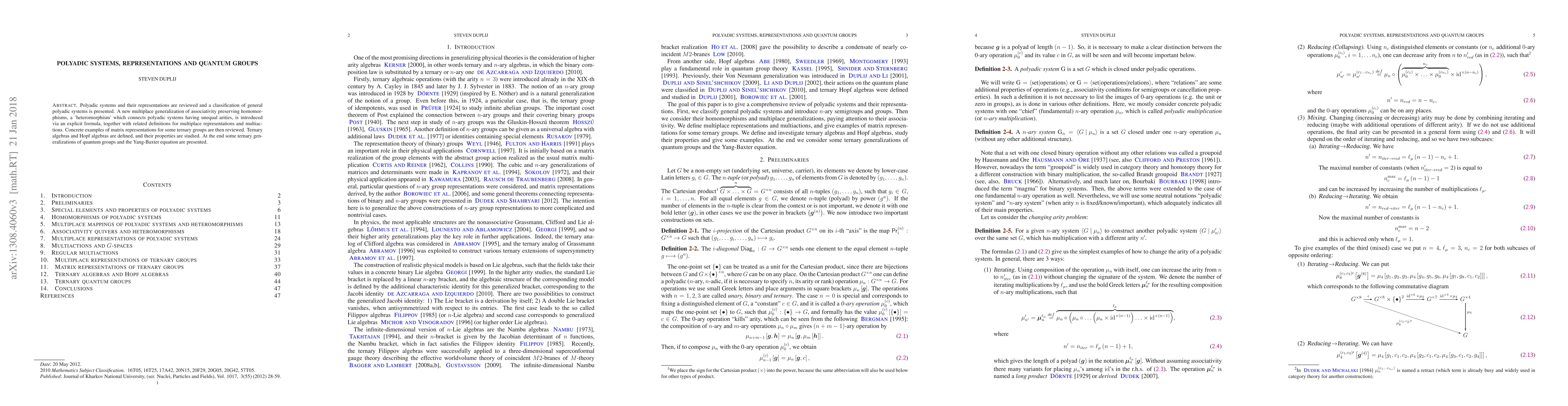 This paper reviews polyadic systems and their representations, introducing a new concept of heteromorphisms that connect systems with different arities. It also explores ternary algebras, Hopf algebras, and ternary generalizations of quantum groups and the Yang-Baxter equation.