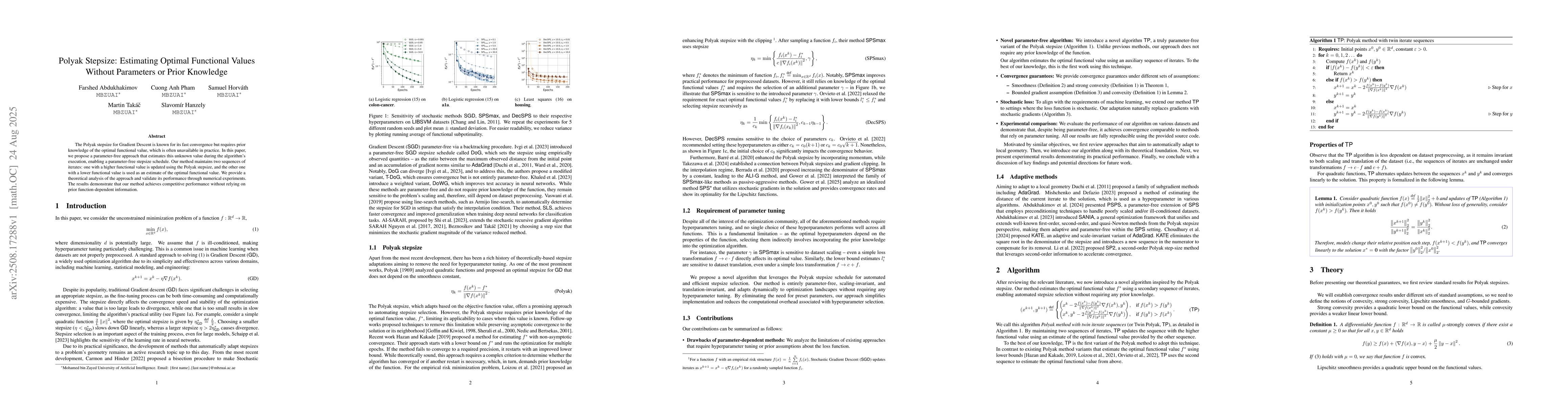 The Polyak stepsize for Gradient Descent is known for its fast convergence but requires prior knowledge of the optimal functional value, which is often unavailable in practice. In this paper, we propose a parameter-free approach that estimates this unknown value during the algorithm's execution, enabling a parameter-free stepsize schedule. Our method maintains two sequences of iterates: one with a higher functional value is updated using the Polyak stepsize, and the other one with a lower functional value is used as an estimate of the optimal functional value. We provide a theoretical analysis of the approach and validate its performance through numerical experiments. The results demonstrate that our method achieves competitive performance without relying on prior function-dependent information.