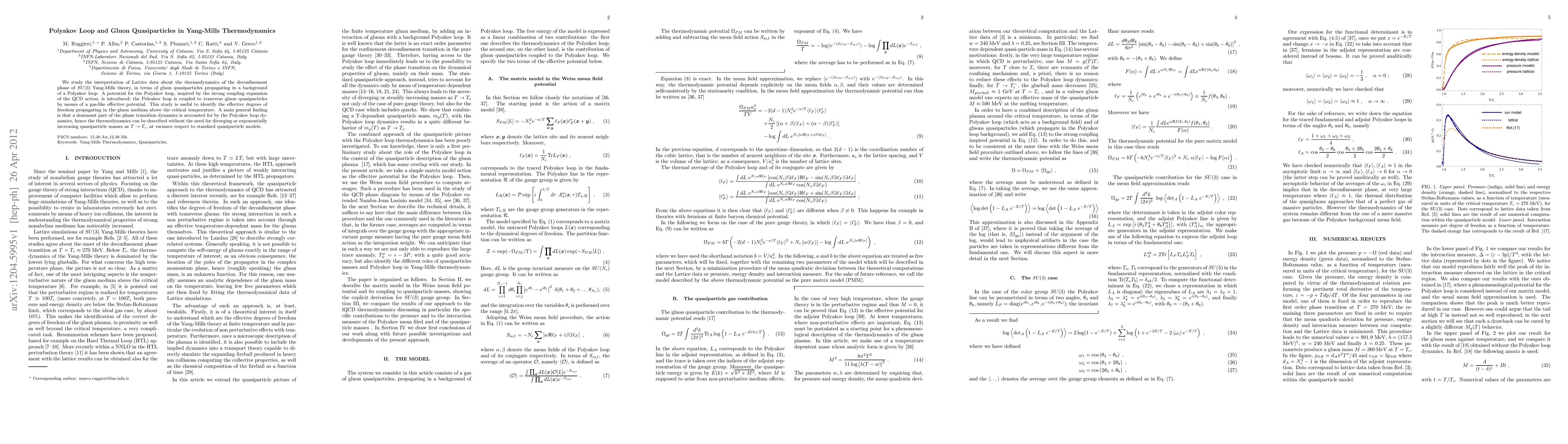 We study the interpretation of Lattice data about the thermodynamics of the deconfinement phase of SU(3) Yang-Mills theory, in terms of gluon quasiparticles propagating in a background of a Polyakov loop. A potential for the Polyakov loop, inspired by the strong coupling expansion of the QCD action, is introduced; the Polyakov loop is coupled to tranverse gluon quasiparticles by means of a gas-like effective potential. This study is useful to identify the effective degrees of freedom propagating in the gluon medium above the critical temperature. A main general finding is that a dominant part of the phase transition dynamics is accounted for by the Polyakov loop dynamics, hence the thermodynamics can be described without the need for diverging or exponentially increasing quasiparticle masses as $T \rightarrow T_c$, at variance respect to standard quasiparticle models.