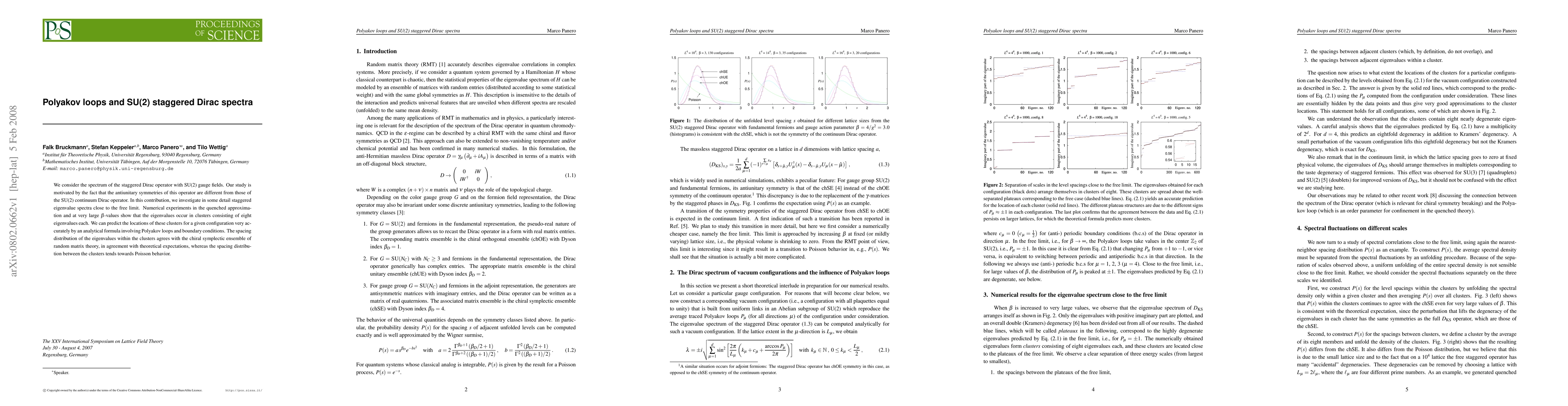 This study investigates the spectrum of the staggered Dirac operator with SU(2) gauge fields, discovering clusters of eight eigenvalues that can be predicted using Polyakov loops and boundary conditions. The spacing distribution within and between these clusters deviates from chiral symmetry, revealing Poisson-like behavior.