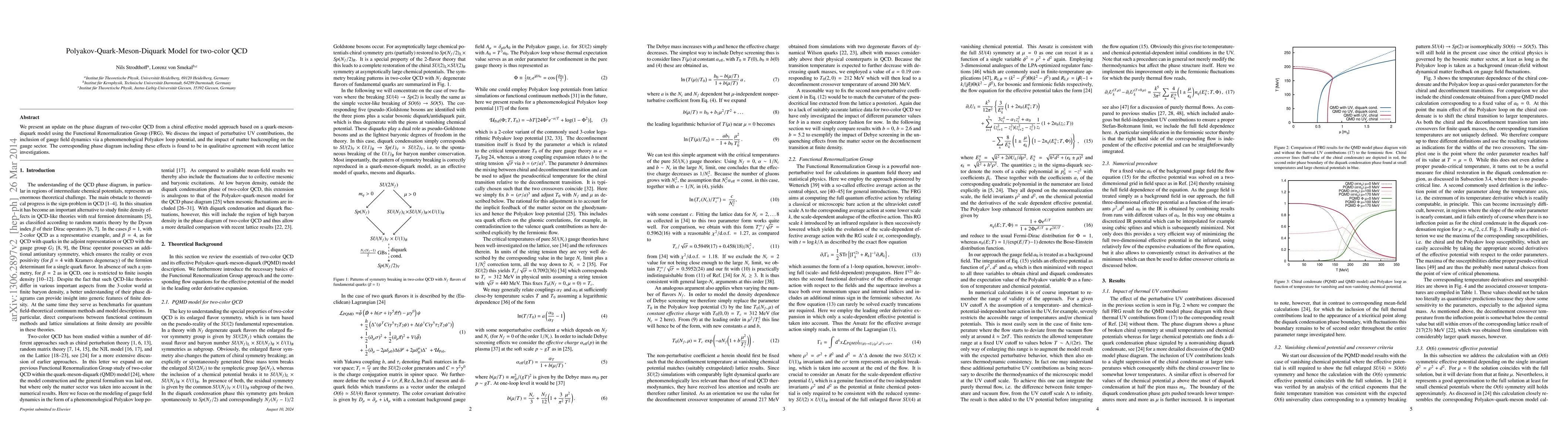 A study on a two-color QCD model using a quark-meson-diquark approach with Functional Renormalization Group found qualitative agreement with lattice investigations, considering UV effects and gauge field dynamics.