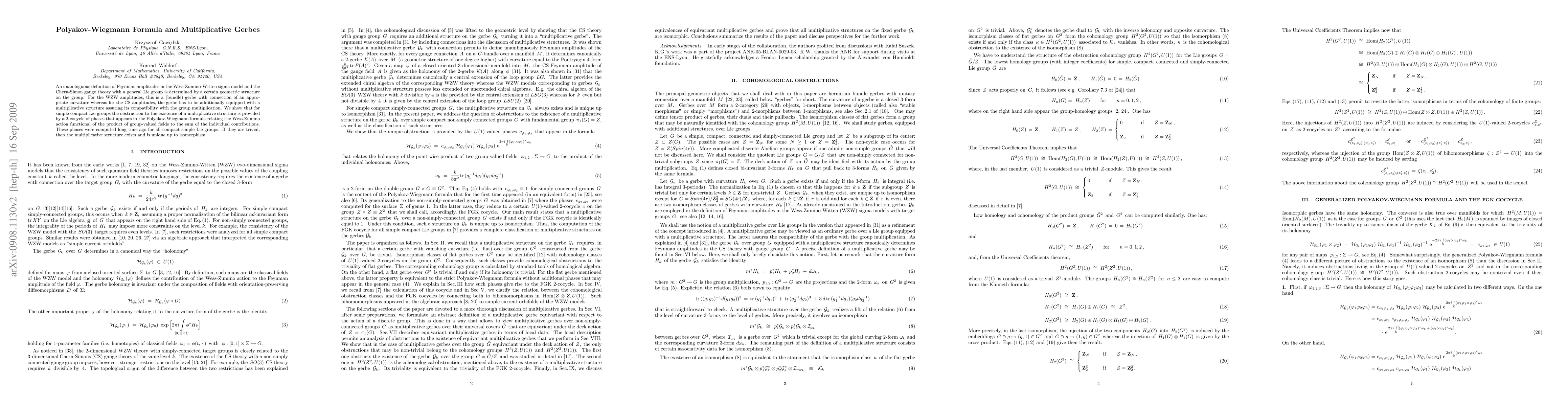 An unambiguous definition of Feynman amplitudes in the Wess-Zumino-Witten sigma model and the Chern-Simon gauge theory with a general Lie group is determined by a certain geometric structure on the group. For the WZW amplitudes, this is a (bundle) gerbe with connection of an appropriate curvature whereas for the CS amplitudes, the gerbe has to be additionally equipped with a multiplicative structure assuring its compatibility with the group multiplication. We show that for simple compact Lie groups the obstruction to the existence of a multiplicative structure is provided by a 2-cocycle of phases that appears in the Polyakov-Wiegmann formula relating the Wess-Zumino action functional of the product of group-valued fields to the sum of the individual contributions. These phases were computed long time ago for all compact simple Lie groups. If they are trivial, then the multiplicative structure exists and is unique up to isomorphism.