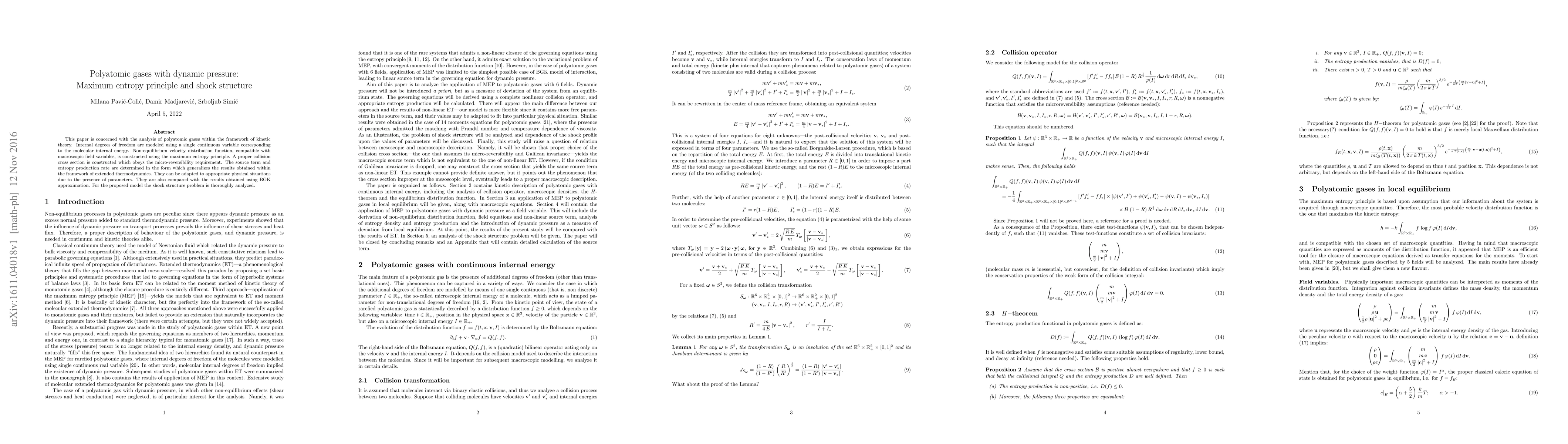 This paper is concerned with the analysis of polyatomic gases within the framework of kinetic theory. Internal degrees of freedom are modeled using a single continuous variable corresponding to the molecular internal energy. Non-equilibrium velocity distribution function, compatible with macroscopic field variables, is constructed using the maximum entropy principle. A proper collision cross section is constructed which obeys the micro-reversibility requirement. The source term and entropy production rate are determined in the form which generalizes the results obtained within the framework of extended thermodynamics. They can be adapted to appropriate physical situations due to the presence of parameters. They are also compared with the results obtained using BGK approximation. For the proposed model the shock structure problem is thoroughly analyzed.