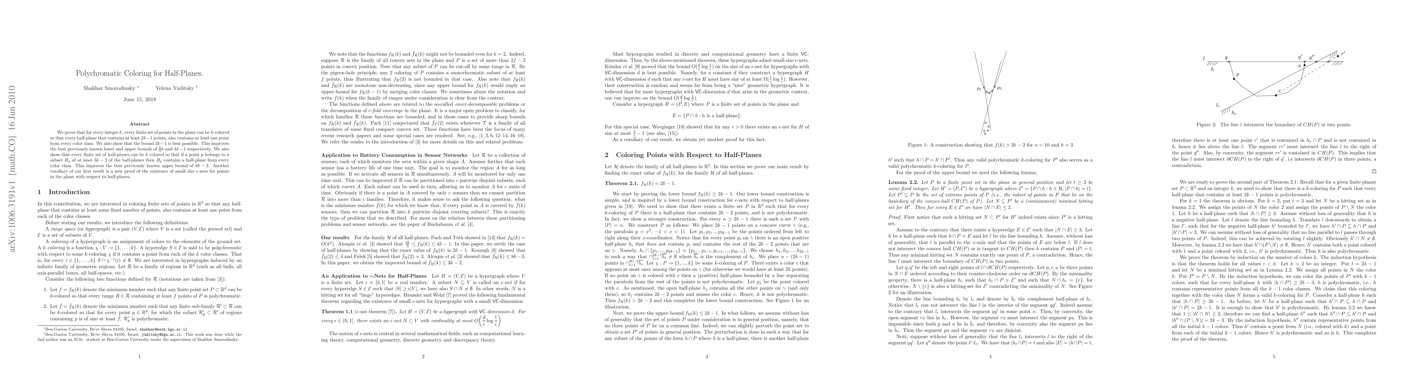 Researchers prove that every finite set of points in a plane can be colored with at most 2k-1 colors so that half-planes containing at least 2k-1 points have points from every color class.