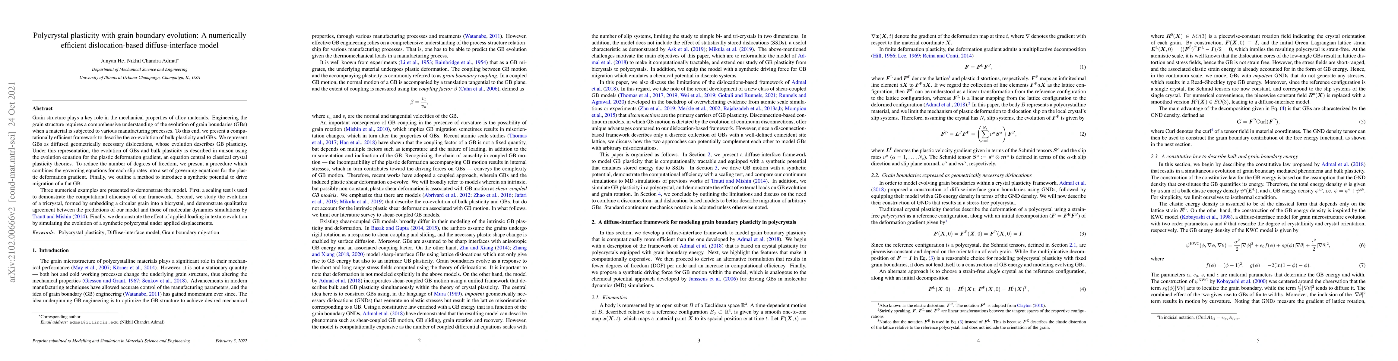 This paper presents a computationally efficient dislocation-based diffuse-interface model for polycrystal plasticity that co-evolves grain boundaries and bulk plasticity. The model uses a synthetic potential to drive grain boundary migration and demonstrates its effectiveness through numerical examples, including a scaling test and simulations of tricrystal and polycrystal evolution under loading.