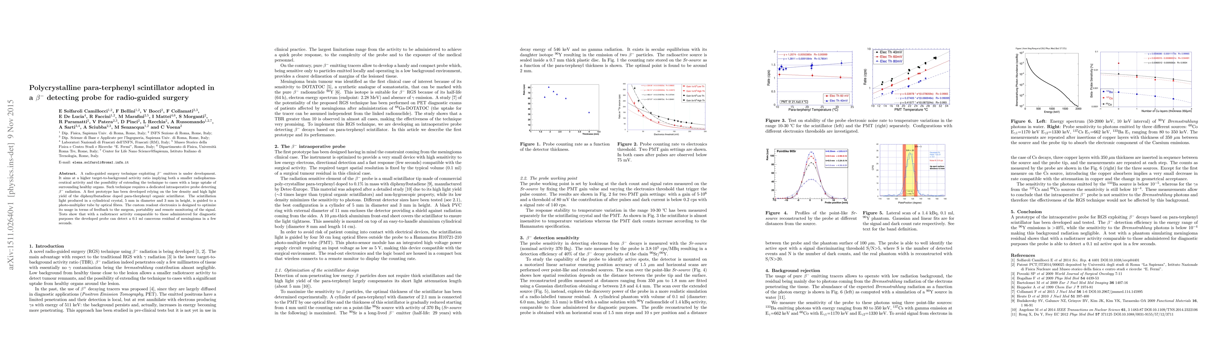 Researchers developed a beta-minus ($\beta^-$) detecting probe for radio-guided surgery using a low-density, high-light-yield organic scintillator. The prototype, utilizing a 5mm-diameter, 3mm-height para-terphenyl crystal, can detect a small cancerous meningioma residue (0.1 ml) within seconds with activity comparable to diagnostic tracers, aiding in minimally invasive procedures.