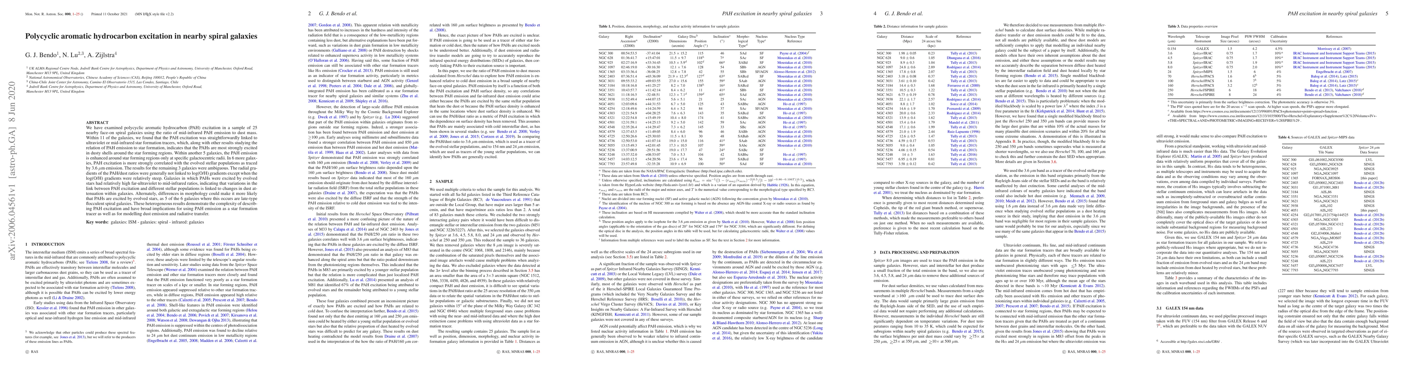 This study investigates PAH excitation in 25 nearby spiral galaxies, revealing that PAHs are primarily excited by star-forming regions in some galaxies, while in others, PAH excitation correlates with evolved stellar populations. The complexity of PAH excitation dynamics has significant implications for star formation tracing and dust emission modeling.