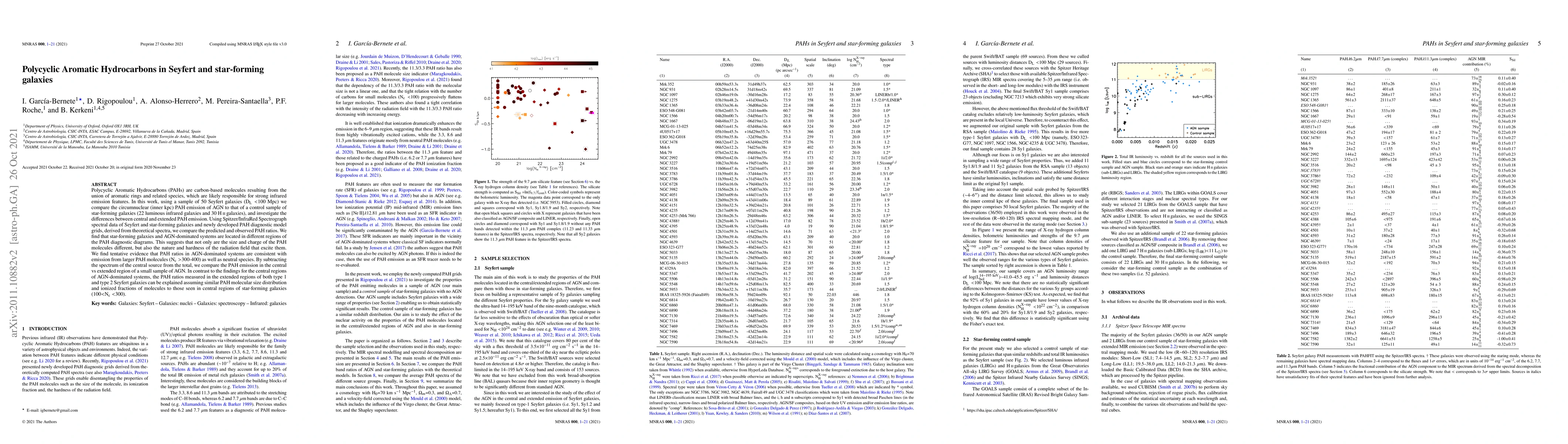 This paper compares Polycyclic Aromatic Hydrocarbon (PAH) emissions in Seyfert galaxies and star-forming galaxies, finding distinct PAH characteristics in AGN-dominated systems. The study suggests that AGN environments favor larger PAH molecules and neutral species, while extended regions show PAH properties similar to star-forming galaxies.