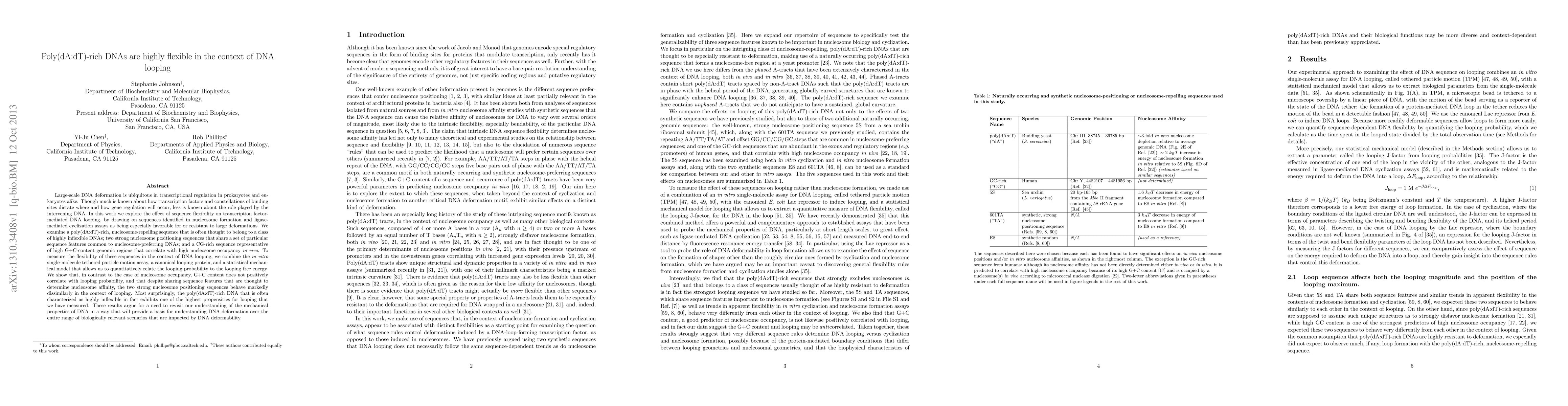 This research demonstrates that poly(dA:dT)-rich DNA sequences, typically considered inflexible, show high flexibility and propensity for DNA looping, contrary to expectations. The study reveals that G+C content does not correlate with looping probability and that nucleosome positioning sequences behave differently in looping contexts.