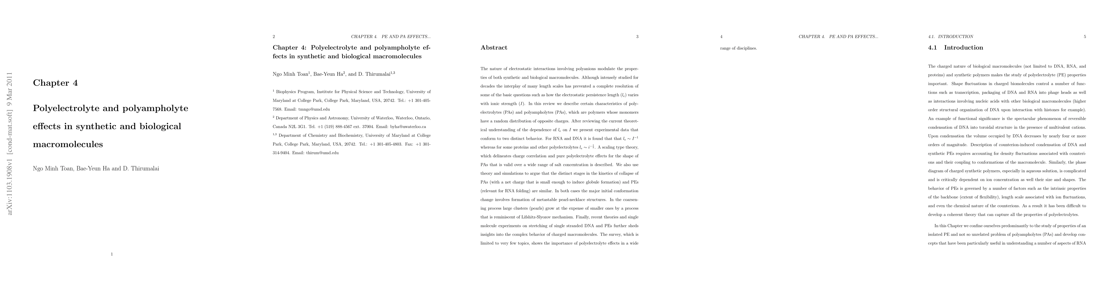 The nature of electrostatic interactions involving polyanions modulate the properties of both synthetic and biological macromolecules. Although intensely studied for decades the interplay of many length scales has prevented a complete resolution of some of the basic questions such as how the electrostatic persistence length ($l_e$) varies with ionic strength ($I$). In this review we describe certain characteristics of polyelectrolytes (PAs) and polyampholytes (PAs), which are polymers whose monomers have a random distribution of opposite charges. After reviewing the current theoretical understanding of the dependence of $l_e$ on $I$ we present experimental data that conform to two distinct behavior. For RNA and DNA it is found that that $l_e \sim I^{-1}$ whereas for some proteins and other polyelectrolytes $l_e \sim i^{-1/2}$. A scaling type theory, which delineates charge correlation and pure polyelectrolyte effects for the shape of PAs that is valid over a wide range of salt concentration is described. We also use theory and simulations to argue that the distinct stages in the kinetics of collapse of PAs (with a net charge that is small enough to induce globule formation) and PEs (relevant for RNA folding) are similar. In both cases the major initial conformation change involves formation of metastable pearl-necklace structures. In the coarsening process large clusters (pearls) grow at the expense of smaller ones by a process that is reminiscent of Lifshitz-Slyozov mechanism. Finally, recent theories and single molecule experiments on stretching of single stranded DNA and PEs further sheds insights into the complex behavior of charged macromolecules. The survey, which is limited to very few topics, shows the importance of polyelectrolyte effects in a wide range of disciplines.