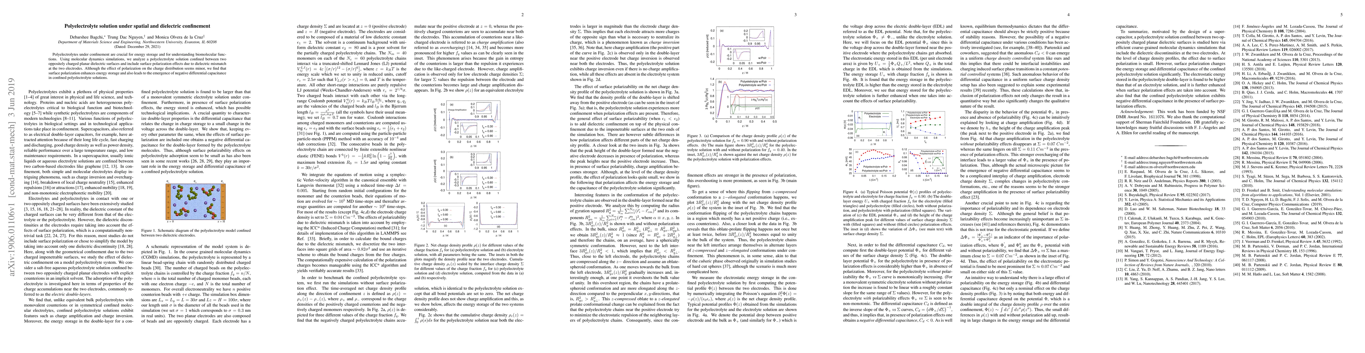 This study uses molecular dynamics simulations to explore polyelectrolyte solutions confined between oppositely charged dielectric surfaces, revealing that surface polarization enhances energy storage and induces negative differential capacitance despite minor effects on charge distribution.