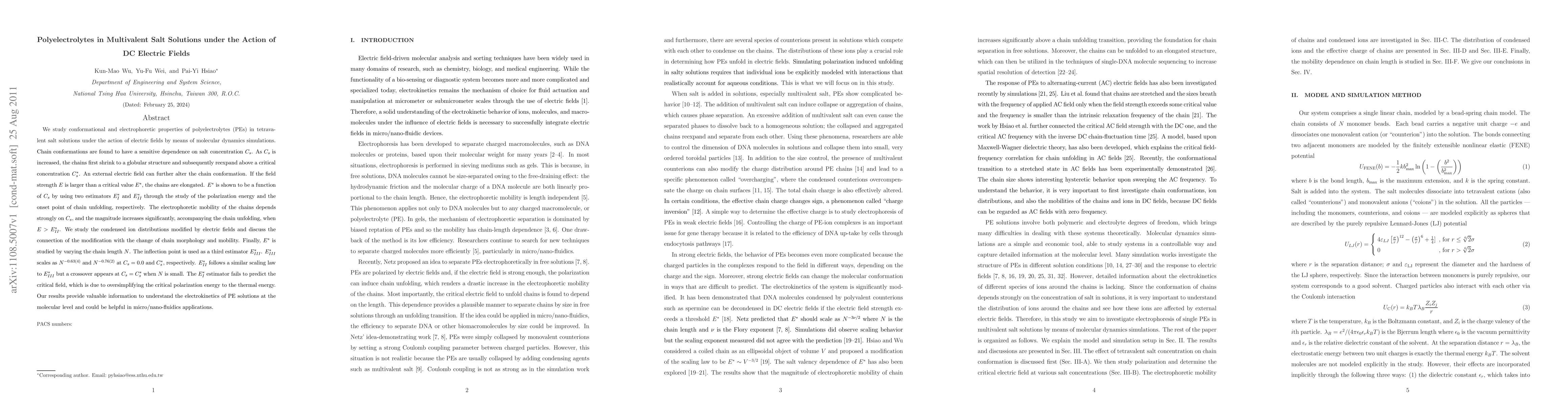 This paper investigates the conformational and electrophoretic properties of polyelectrolytes in tetravalent salt solutions under DC electric fields using molecular dynamics simulations. The study reveals that chain conformations are sensitive to salt concentration and electric field strength, with critical thresholds dictating chain shrinkage, reexpansion, and elongation.