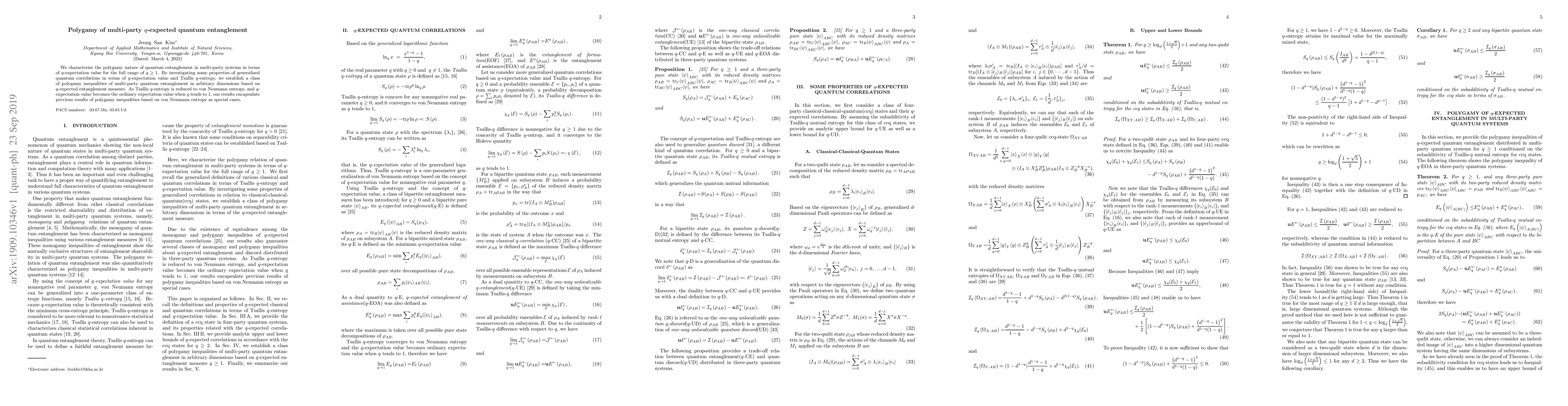 We characterize the polygamy nature of quantum entanglement in multi-party systems in terms of $q$-expectation value for the full range of $q\geq 1$. By investigating some properties of generalized quantum correlations in terms of $q$-expectation value and Tsallis $q$-entropy, we establish a class of polygamy inequalities of multi-party quantum entanglement in arbitrary dimensions based on $q$-expected entanglement measure. As Tsallis $q$-entropy is reduced to von Neumann entropy, and $q$-expectation value becomes the ordinary expectation value when $q$ tends to $1$, our results encapsulate previous results of polygamy inequalities based on von Neumann entropy as special cases.